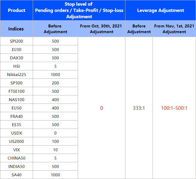 2. The leverage of indices contracts will be between 100:1 and 500:1 (It’s subject to your account leverage) instead of being fixed at 333:1.