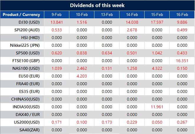 Warmly reminds you that the component stocks in the stock index spot generate dividends. When dividends are distributed, VT Markets will make dividends and deductions for the clients who hold the trading products after the close of the day before the ex-dividend date.