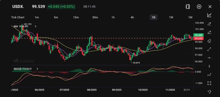 US Dollar Index (USDX) memulih sedikit pada hari Jumaat, meningkat kepada 99.599 dan meraih kembali sebahagian daripada kerugian besar yang terkumpul awal minggu ini. Namun begitu, kenaikan ini tidak cukup untuk menampung kejatuhan lebih besar, dengan dolar AS masih menuju prestasi mingguan paling lemah sejak 21 Julai, selepas merosot hampir 1.4% pada paras terendahnya. PerubahanContinue Reading