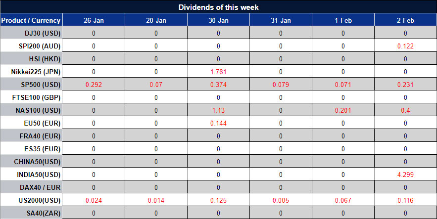 Warmly reminds you that the component stocks in the stock index spot generate dividends. When dividends are distributed, VT Markets will make dividends and deductions for the clients who hold the trading products after the close of the day before the ex-dividend date.