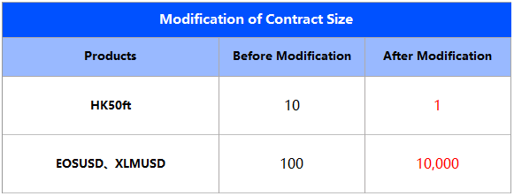 2. The contract size of EOSUSD, XLMUSD will be 10,000.