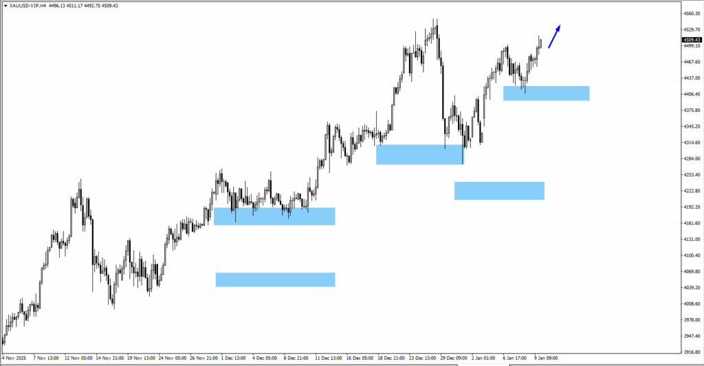 – Harga emas menembusi paras ayunan tinggi 4,500, meneruskan struktur menaik.
