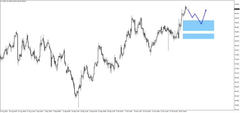 – Indeks Dolar AS (USDX) meningkat ke arah zon 99.00–100.00, menandakan sentimen berhati-hati.