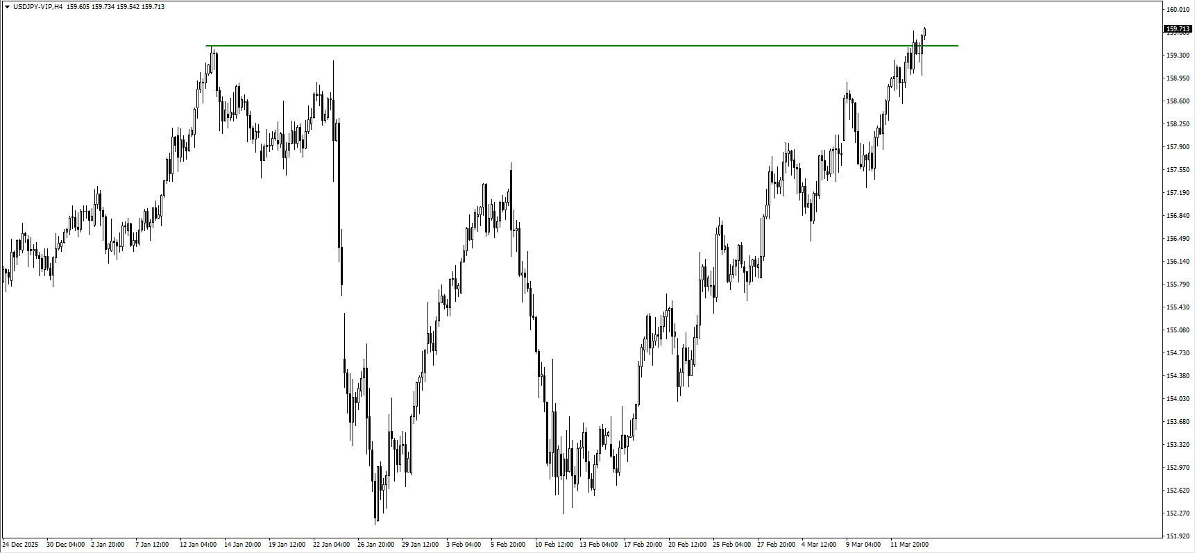 • USDJPY melepasi paras tinggi 159.45, menandakan yen terus lemah.