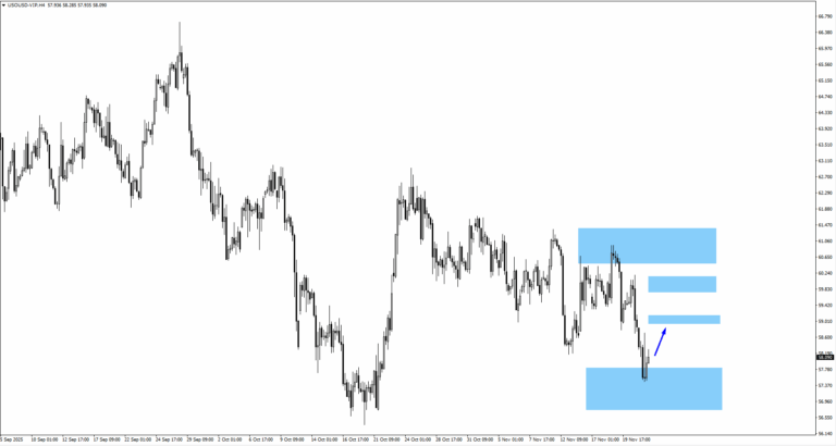 – Rintangan berada pada $61.05, dengan zon pembetulan potensi berhampiran $59.05.