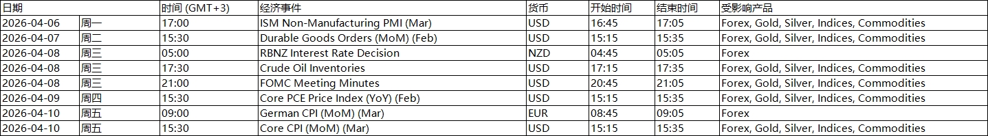 所有日期及时间均以 GMT+3(MT4/MT5 服务器时间)为准。