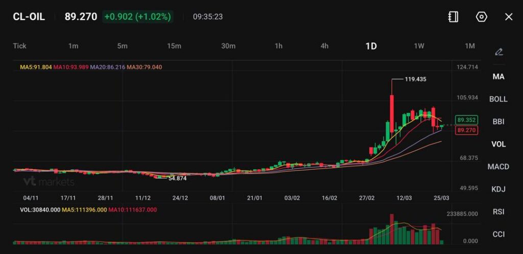 战事仍在持续:以色列打击伊朗,美国增派兵力,包括来自第82空降师的数千人。伊朗对以色列发动新一轮导弹齐射;海湾国家也通报多次拦截无人机与导弹,同时黎巴嫩与伊拉克出现冲突。 市场几乎已排除美国联邦储备局(美联储,负责制定美国利率政策的中央银行)进一步降息的可能,并提高了对年底加息的定价,支撑美元。这可能限制黄金进一步上行空间。 技术面方面,市场关注能否站上100小时SMA(短线趋势参考)。不过价格在从3月高点回撤的38.2%斐波那契回撤位(常用来判断回调可能止步的位置之一)附近遇阻。MACD(指数平滑异同移动平均线,用来观察趋势强弱与转折)仍为正;RSI(相对强弱指标,用来衡量涨跌动能是否偏热/偏冷)处于60上方。上破4,600美元后,目标看向4,637美元,其后是4,750美元附近区域;支撑在4,470与4,401美元,其后是4,250–4,300美元。通胀、美联储政策与波动