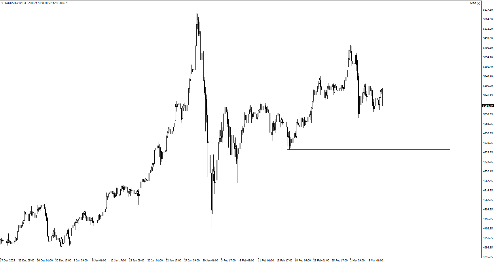 - XAUUSD在4,996美元支撑上方整理(横盘震荡)。
