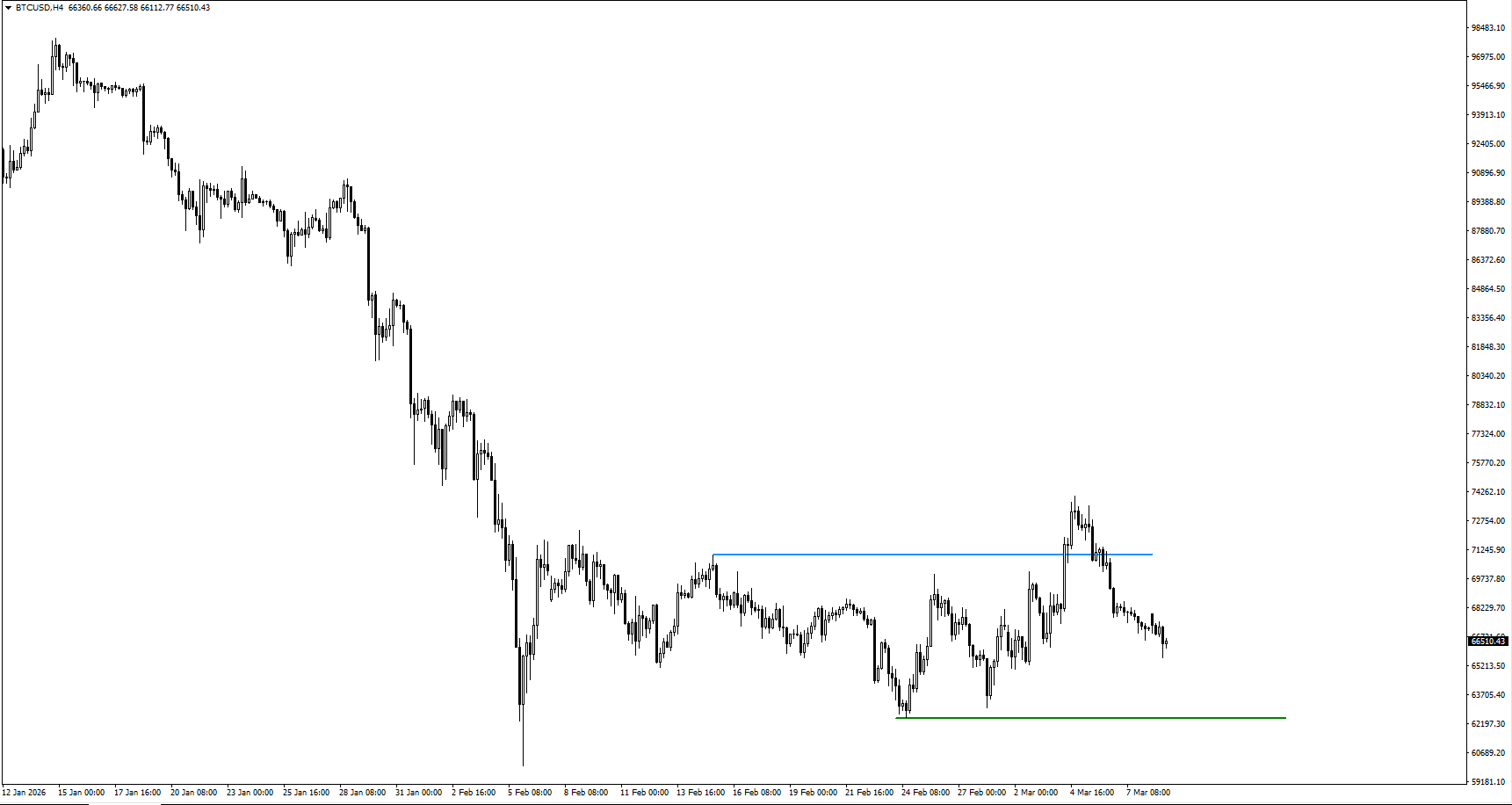 黄金(XAUUSD)处于整理,市场等待美国CPI数据。关键价位是4,996美元(支撑)。若跌破,卖方可能把目标指向4,842美元,下行力度或增强。通胀数据与美元强弱将左右下一段主要走势。 - 比特币为何突破7万美元后下跌?