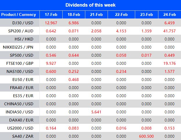 Warmly reminds you that the component stocks in the stock index spot generate dividends. When dividends are distributed, VT Markets will make dividends and deductions for the clients who hold the trading products after the close of the day before the ex-dividend date.