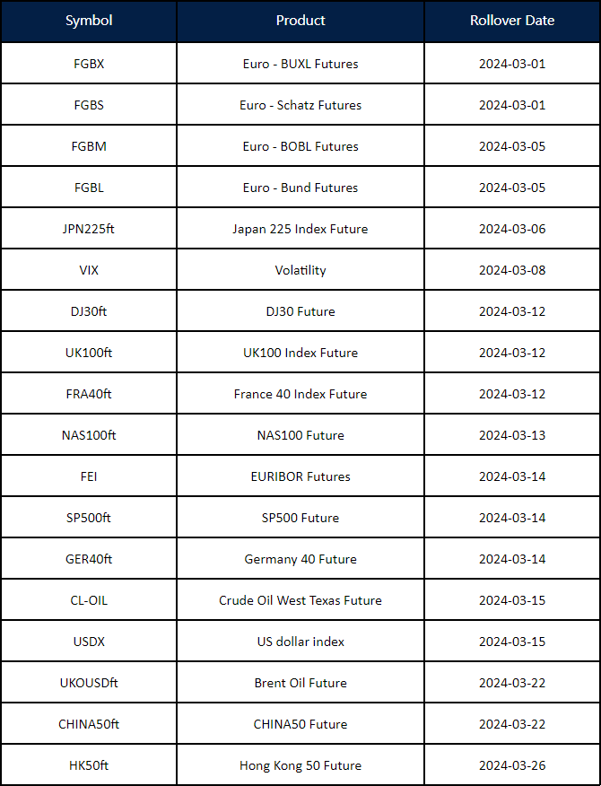 • Please ensure that all take-profit and stop-loss settings are adjusted before the rollover occurs.