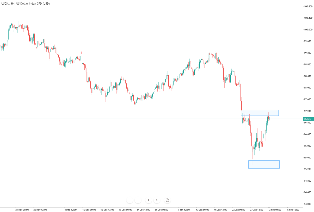 – USDX is currently testing an important resistance level priced at 97.