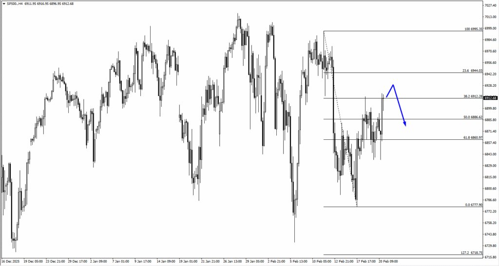 – SP500 is trading around 6,912, which aligns exactly with the 38.2% retracement.