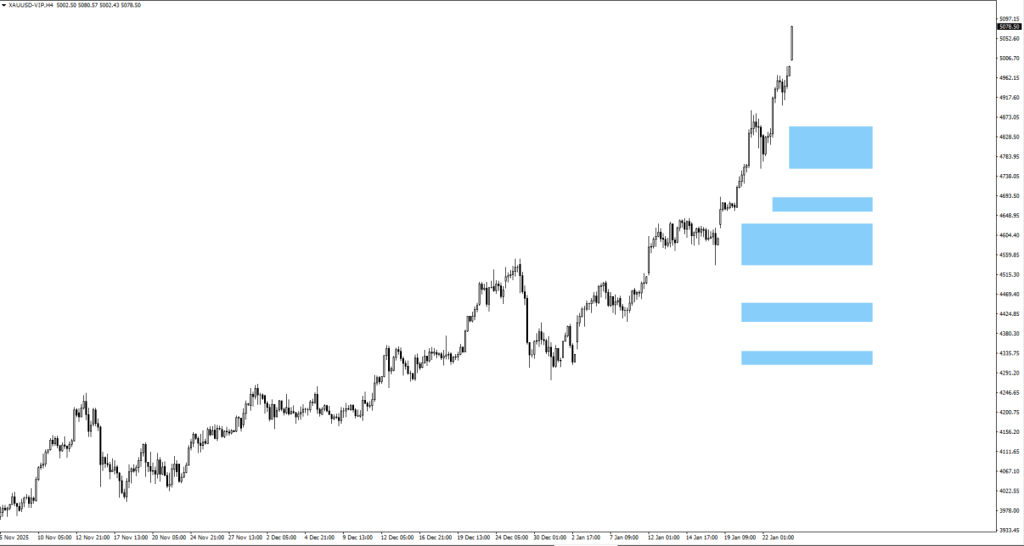 – Gold has broken above 5000 following last week’s move.